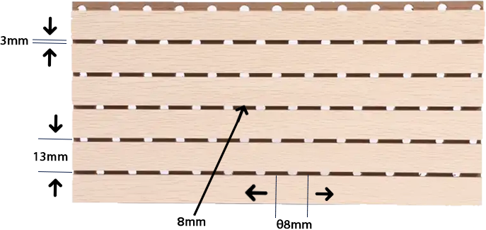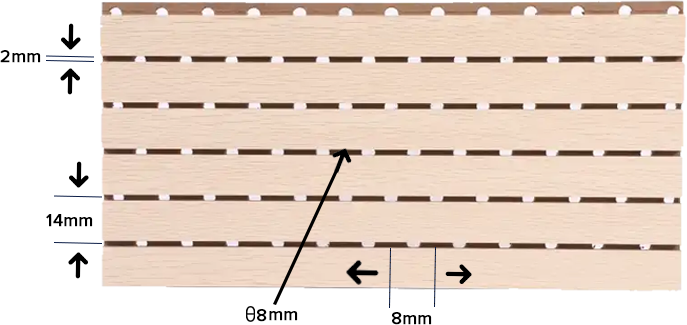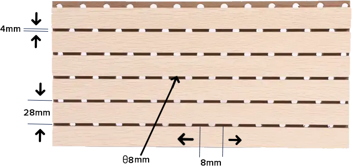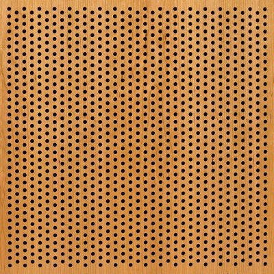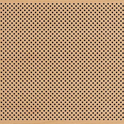 The structure of perforated ceiling tiles is simple. The substrate is MDF, with melamine or veneer on both sides and the veneers can be painted. Then after perforations are done, acoustic fleece are attached to the back of the panel.