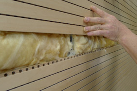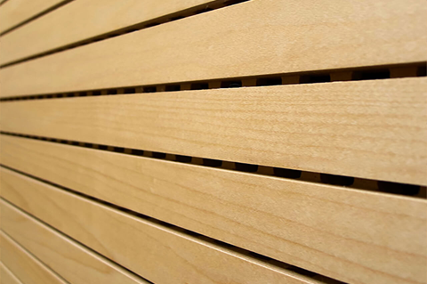 Grooved acoustic panels supplied in form of modular slats, with special sound absorption characteristics, aesthetic finishes and excellent installation results.